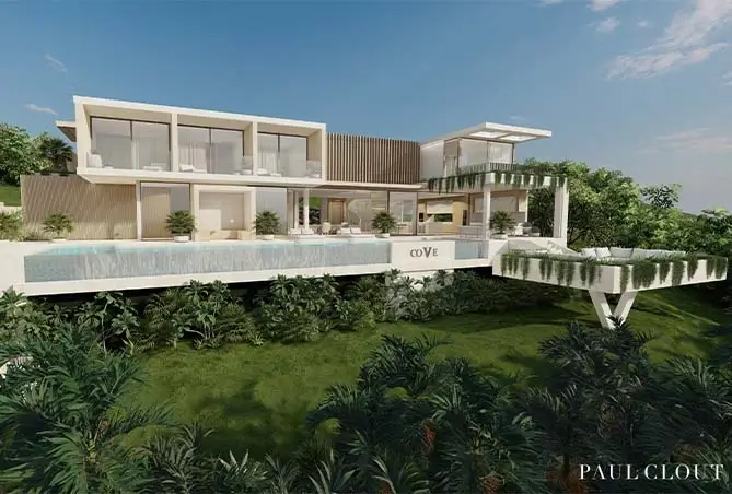 This approved executive home designed by Paul Clout is on a constrained site elevated hillslope site that required material change of use approval due to the site’s environmental management zoning and numerous planning scheme overlays; including: potential landslip, watercourse and natural areas and hillslope and scenic amenity overlays. The planning scheme requires homes to be of dark and subdued external colours, however we gained approval for white external clad alabaster stone.